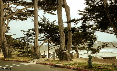 It had been sunny and warm all day but later in the afternoon the fog crept in from the Ocean and it got cold and kind of wett. This is the beach at Carmel-by-the Sea. They have beautiful houses along the coast with lovely front yards in the typical California style.